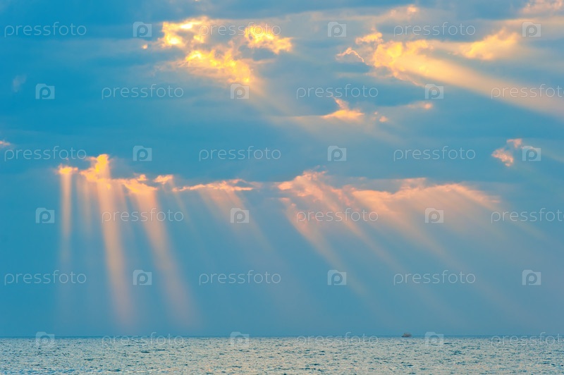 Лучи солнца светят сквозь облака над морем