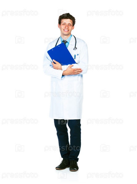 Молодой улыбающийся доктор с планшетом