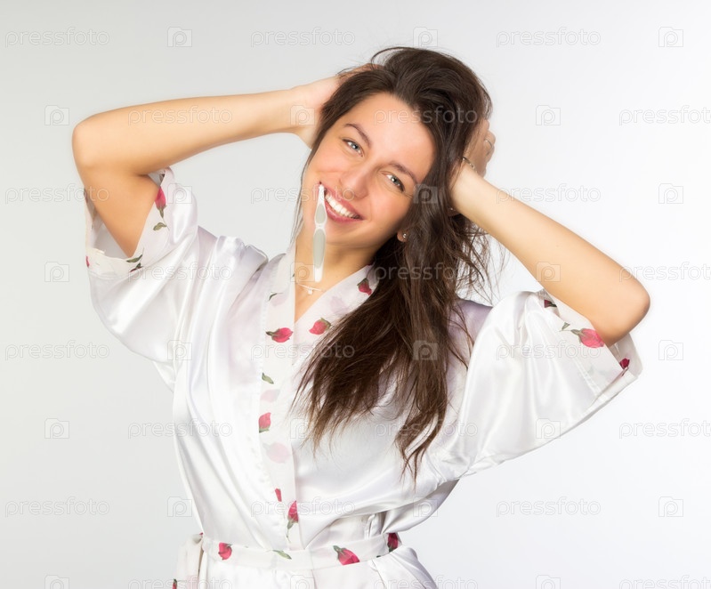 Женщина в пеньюаре с зубной щеткой