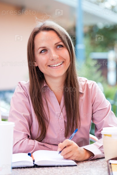 Деловая женщина пишет в ежедневнике