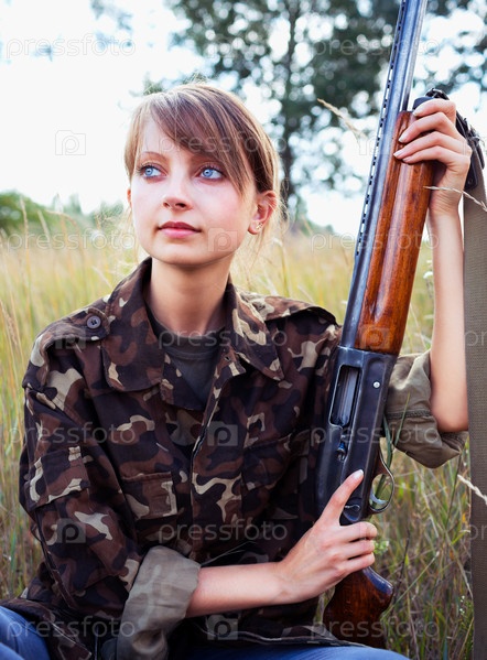 Молодая красивая девушка с ружьем