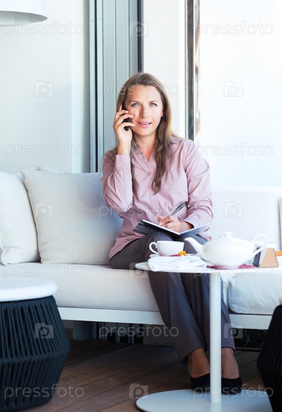 Деловая женщина пишет в ежедневнике