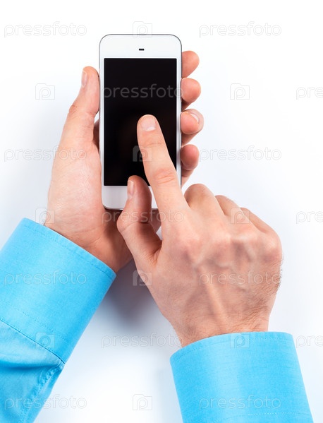 Рука со смартфоном на белом фоне
