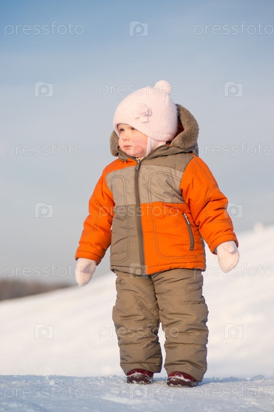 Очаровательный ребенок в зимнем парке