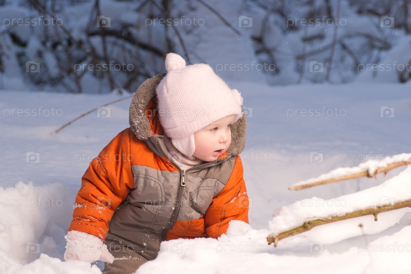 Очаровательный ребенок на зимней прогулке