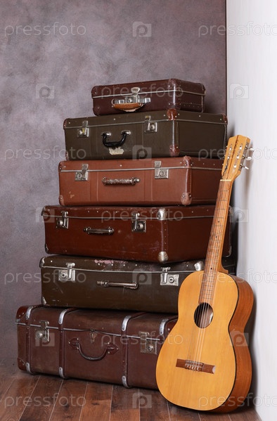 Старые чемоданы у стены