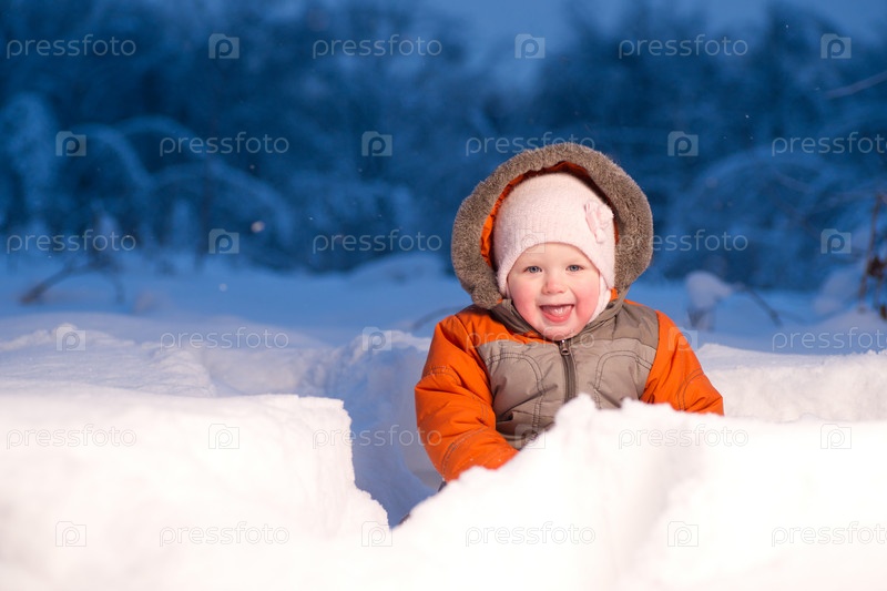 Очаровательный ребенок на зимней прогулке