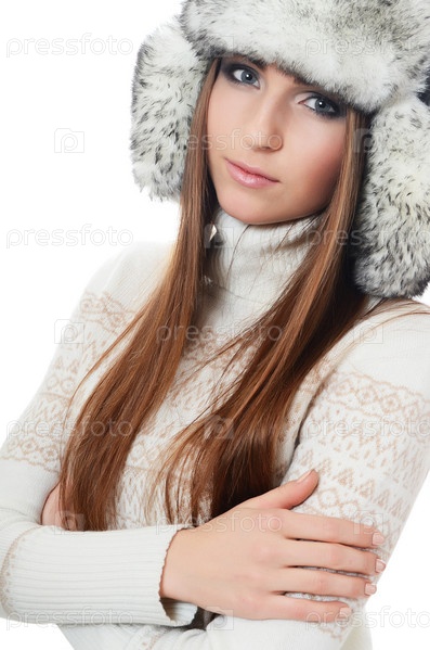 Красивая девушка в шапке на белом фоне