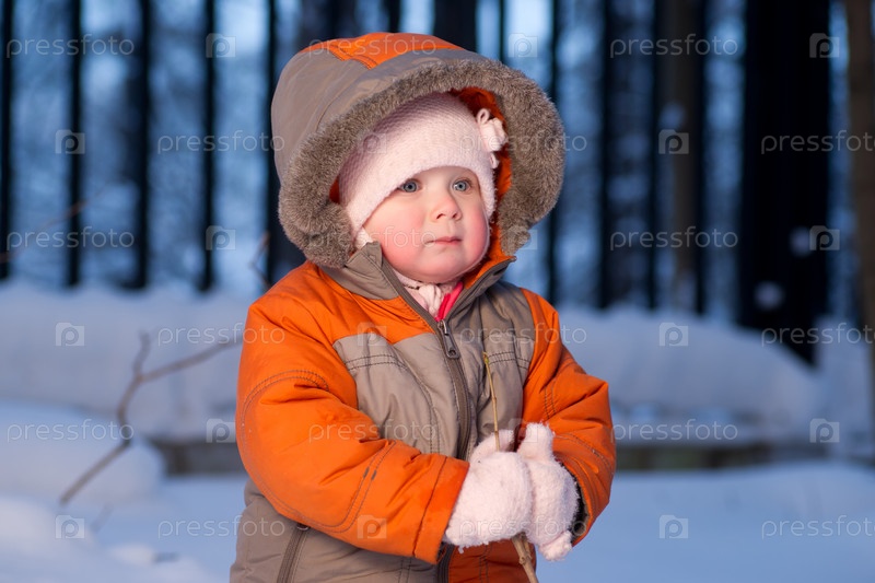 Очаровательный ребенок на зимней прогулке