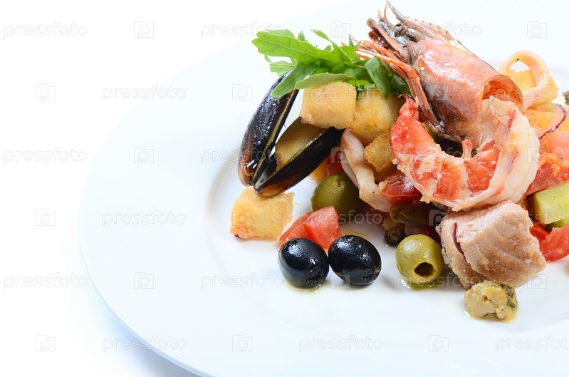 Салат с кальмарами, филе тунца, мясом мидий