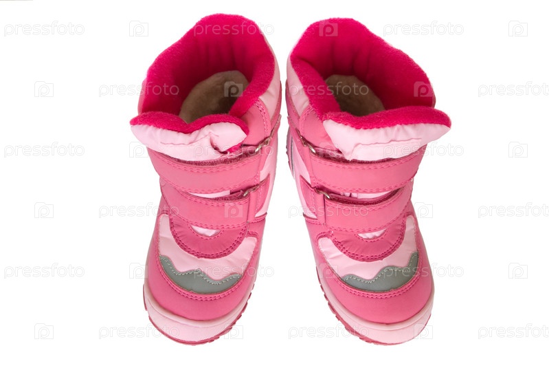 Детские розовые сапожки на белом фоне