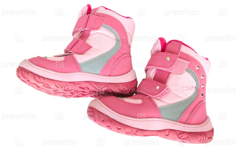 Детские розовые сапожки на белом фоне
