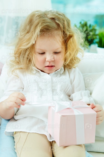 Девочка открывает подарок