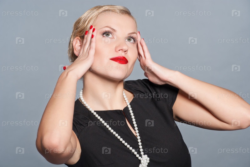 Портрет красивой молодой женщины с ярким макияжем и маникюром