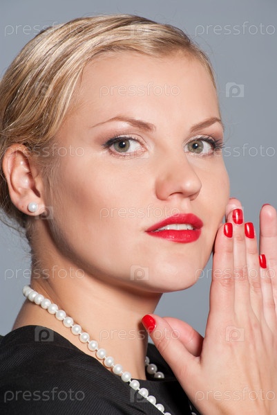 Портрет красивой молодой женщины с ярким макияжем и маникюром