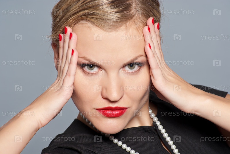 Портрет красивой молодой женщины с ярким макияжем и маникюром