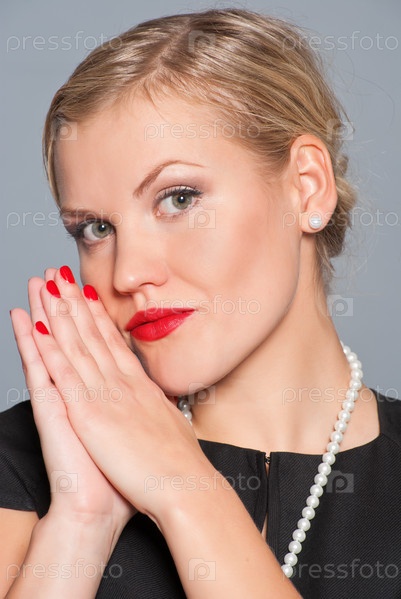 Портрет красивой молодой женщины с ярким макияжем и маникюром