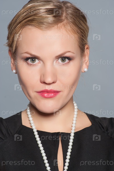 Портрет красивой молодой женщины на сером фоне