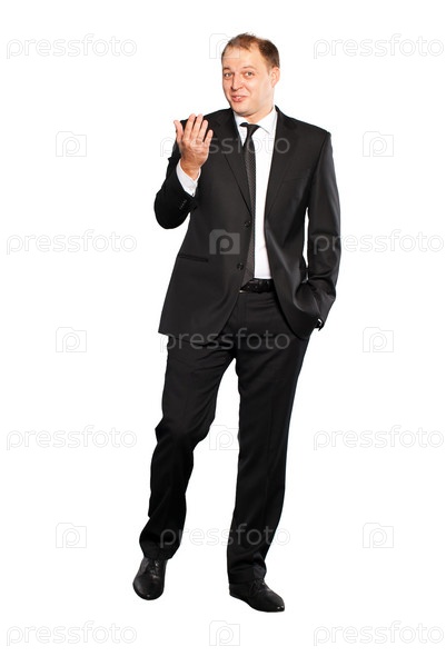Бизнесмен в черном костюме на белом фоне