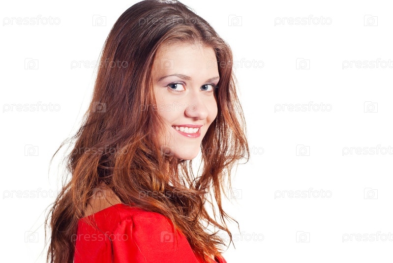 Привлекательная молодая женщина в красном платье