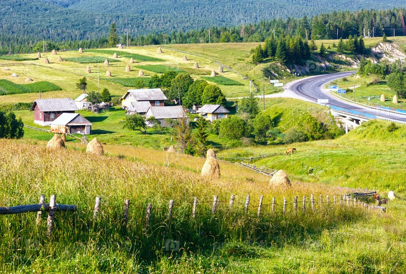Стога сена в летних горах, Карпаты, Украина