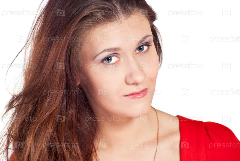 Красивая молодая женщина на белом фоне