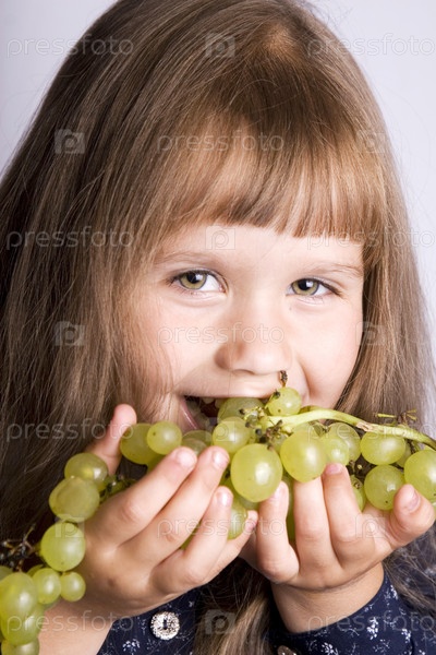 Счастливая девочка кушает виноград