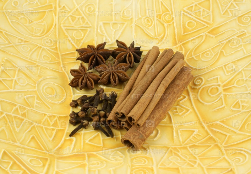 Тропические специи на тарелке с африканским узором