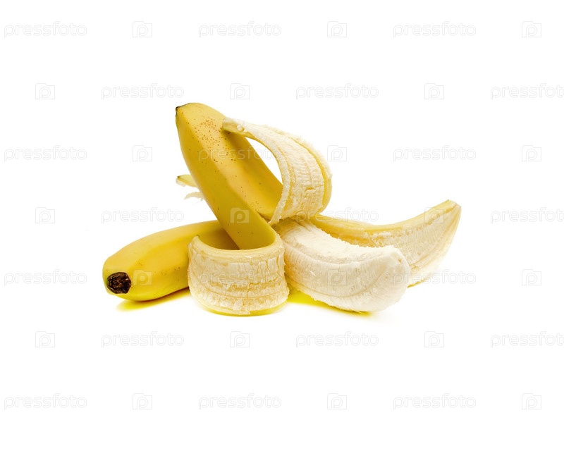 Спелые бананы на белом фоне