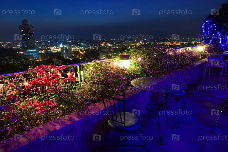 Вечерний панорамный вид с крыши гостиницы в Бангкоке, Таиланд