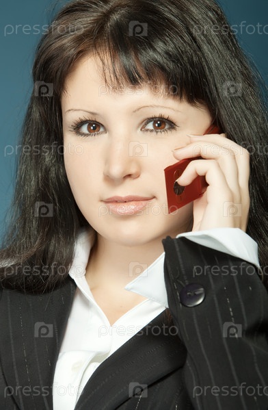 Портрет бизнес-леди, разговаривающей по телефону на сером фоне