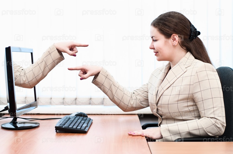 Удивленная молодая женщина за рабочим местом