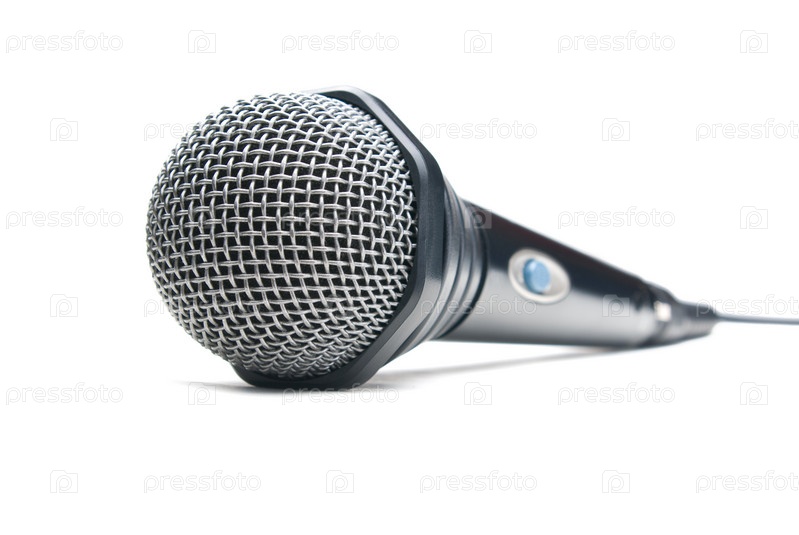 Микрофон крупным планом на белом фоне