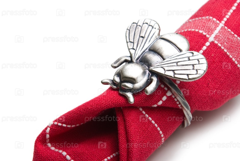 Салфетка с кольцом в виде мухи на белом фоне