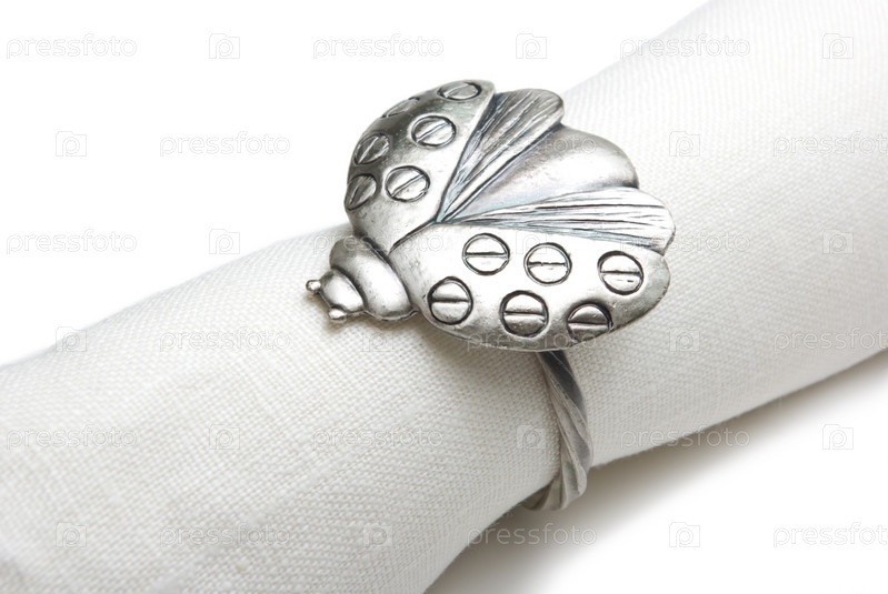 Салфетка с кольцом в виде божьей коровки на белом фоне
