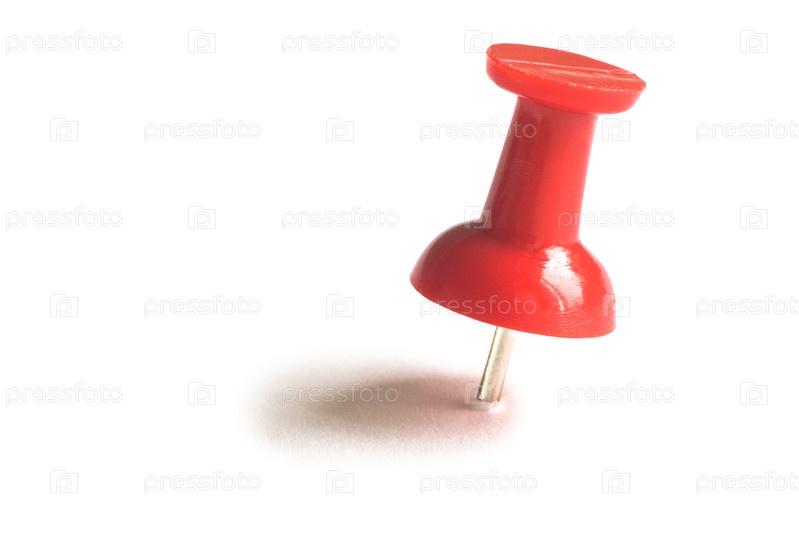 Красная канцелярская кнопка на белом фоне с тенью