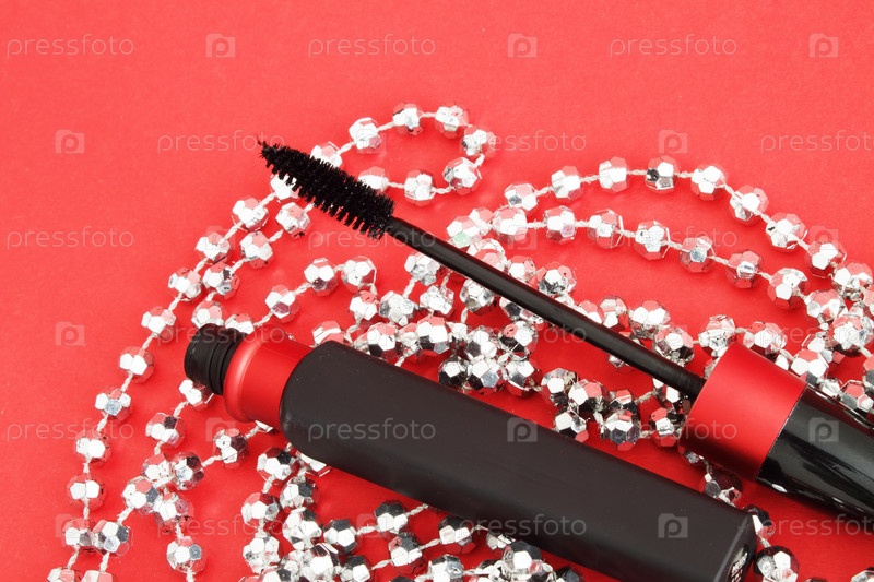 Маскара на красном фоне