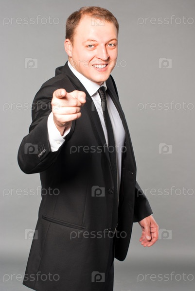 Бизнесмен указывает в камеру