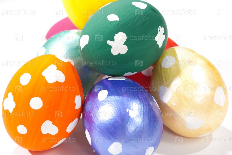 Пасхальные яйца на белом фоне