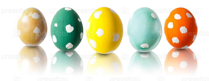 Пасхальные яйца на белом фоне
