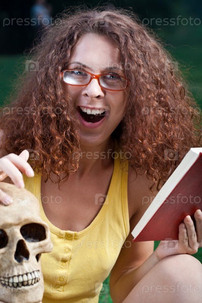 Молодая женщина изучает анатомию