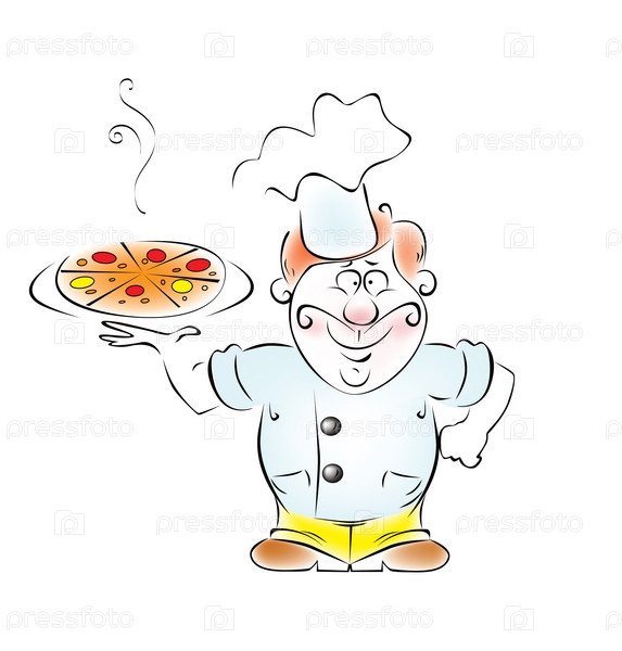 Карикатурный повар с пиццей