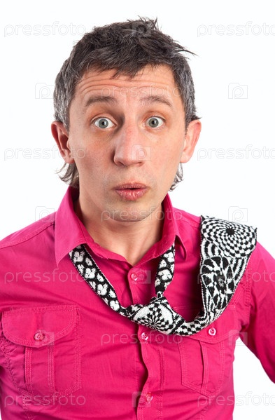 Удивленный мужчина в розовой рубашке