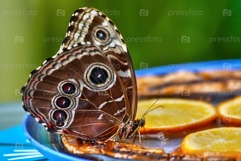 Бабочка ест фрукты