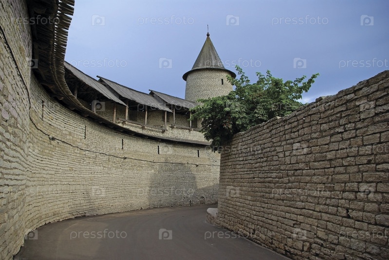 Башня и старая городская стена Псковского Кремля, Россия