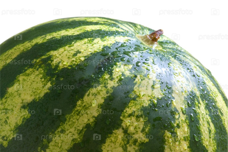 Большой спелый арбуз с каплями воды изолирован на белом
