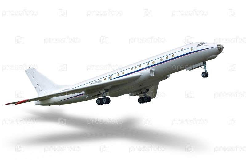 Взлетающий пассажирский самолет изолирован на белом