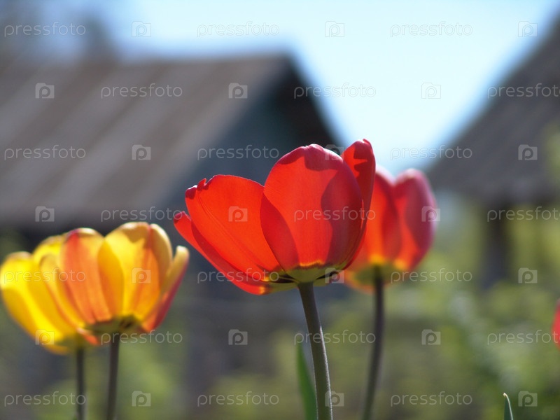 Цветущие тюльпаны в лучах солнца
