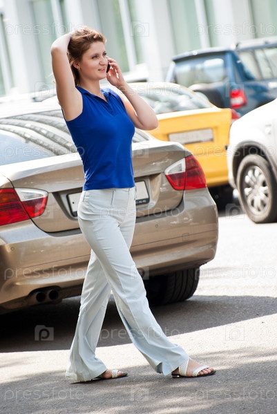 Молодая женщина разговаривает по телефону на улице