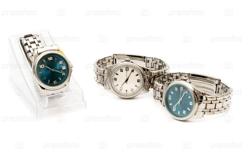 Мужские наручные часы на белом фоне